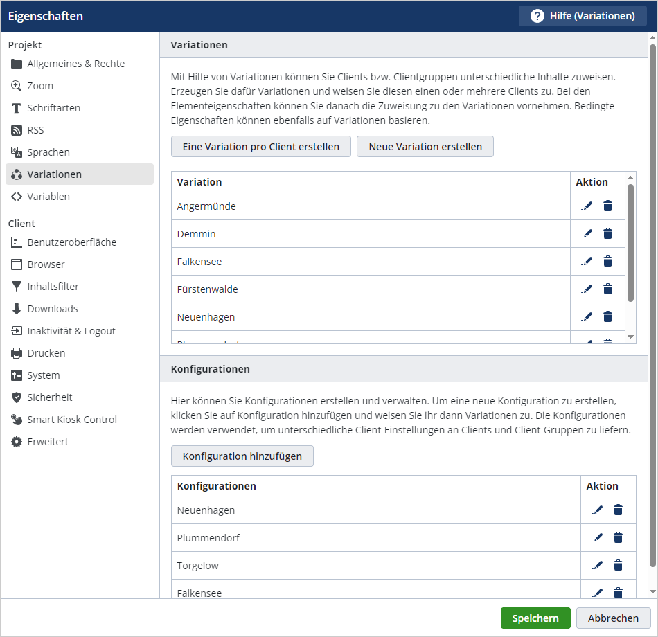 Abbildung 4: Einblick in die Standort-Variationen innerhalb SiteKiosk Online