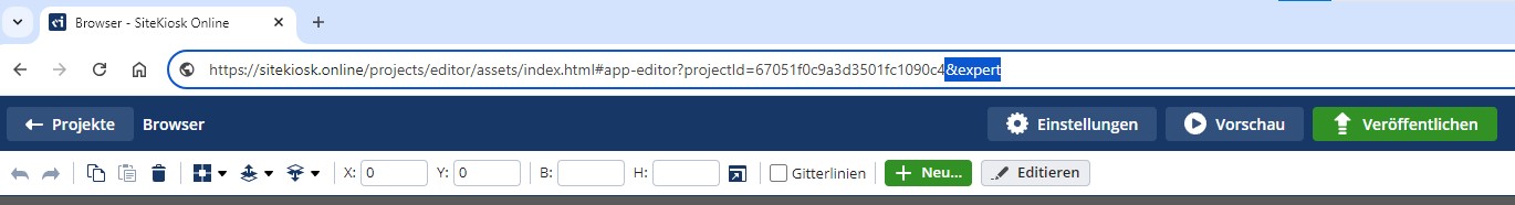 1. Ergänzen Sie die angezeigte SiteKiosk.online-URL in Ihrem Browser am Ende mit &expert