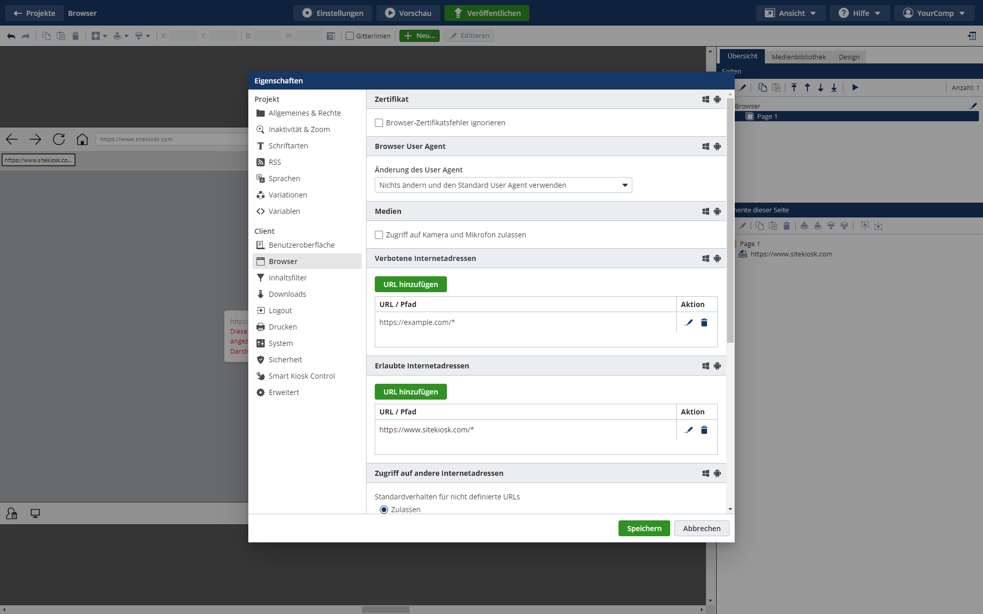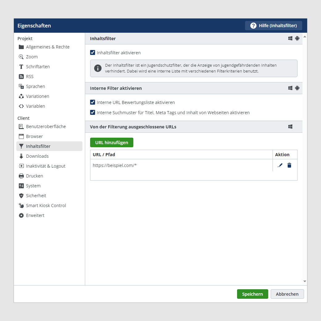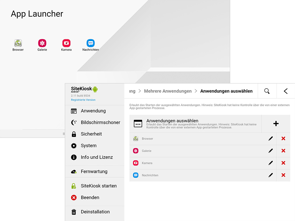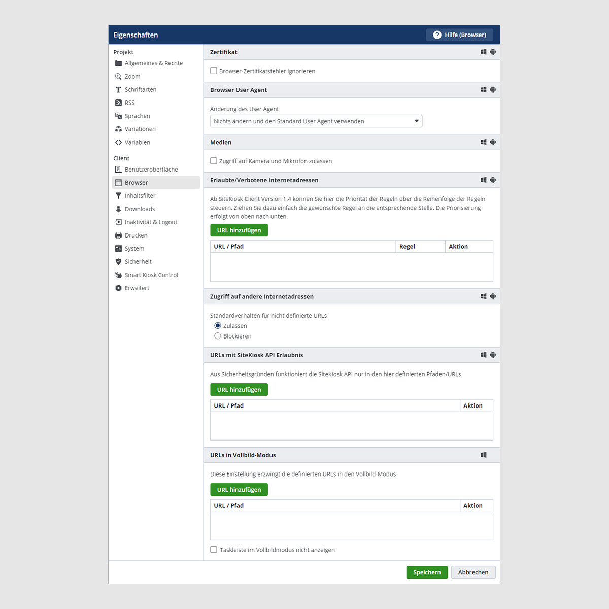 Sicherer Kiosk-Modus für stationäre und mobile Geräte