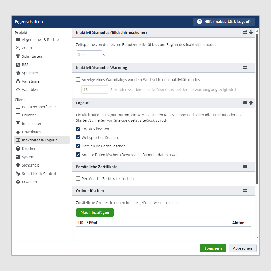 Leerlauf-Timeout Automatischer Logout bei Inaktivität.