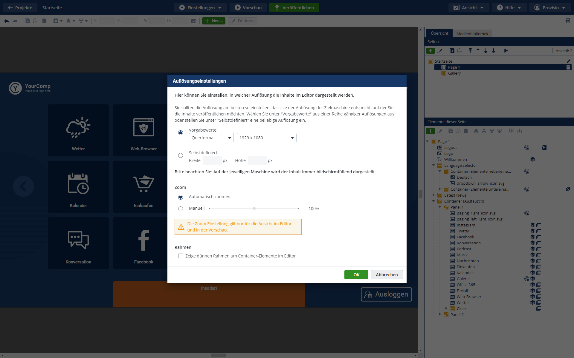 Multi-Media Layouts Anzeigen verschiedener Inhalte.