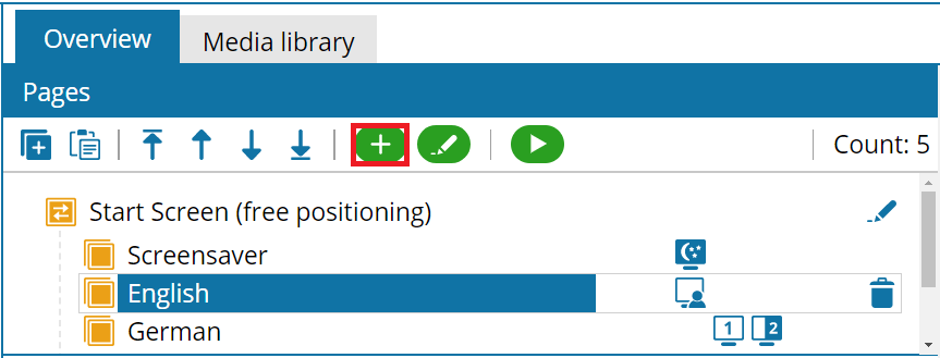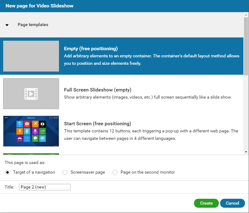 page templates for example to create a screen saver that is displayed when no user activity occurs at the terminal. To create a screen saver, you should add a second page to the project and activate the screensaver setting in the dialog