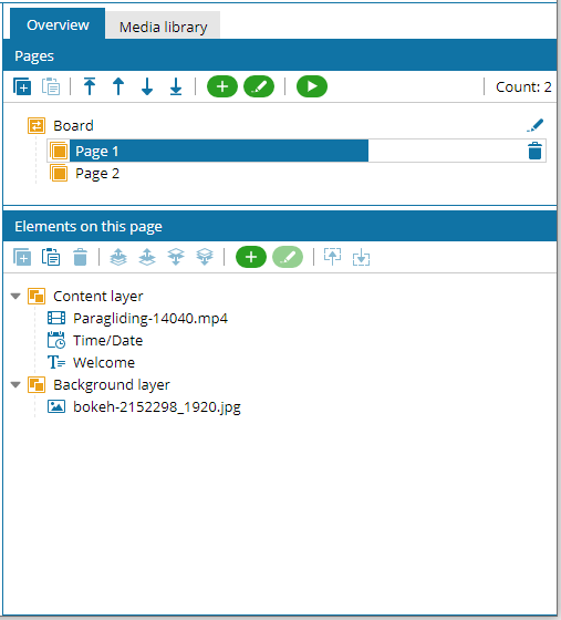 Using the background layer, you can create two-level projects. This makes it possible to, for example, display text elements or images over a background video. In principle, all