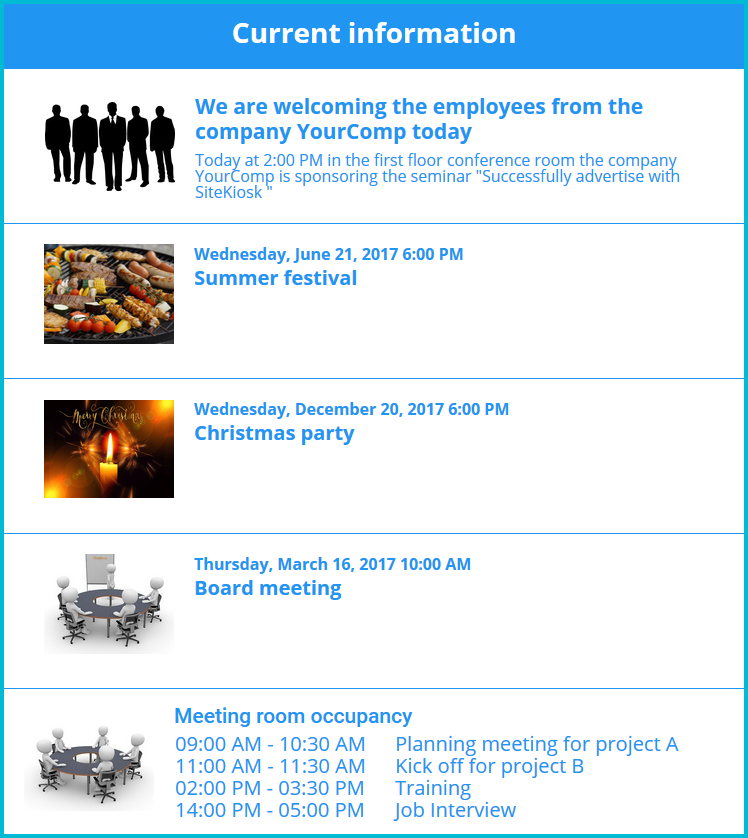Nachrichteneintrag Kurzmeldungen, Veranstaltungshinweise und Termine präsentieren. Es können aber auch alle anderen Elemente in einen Überlaufcontainer eingefügt werden.