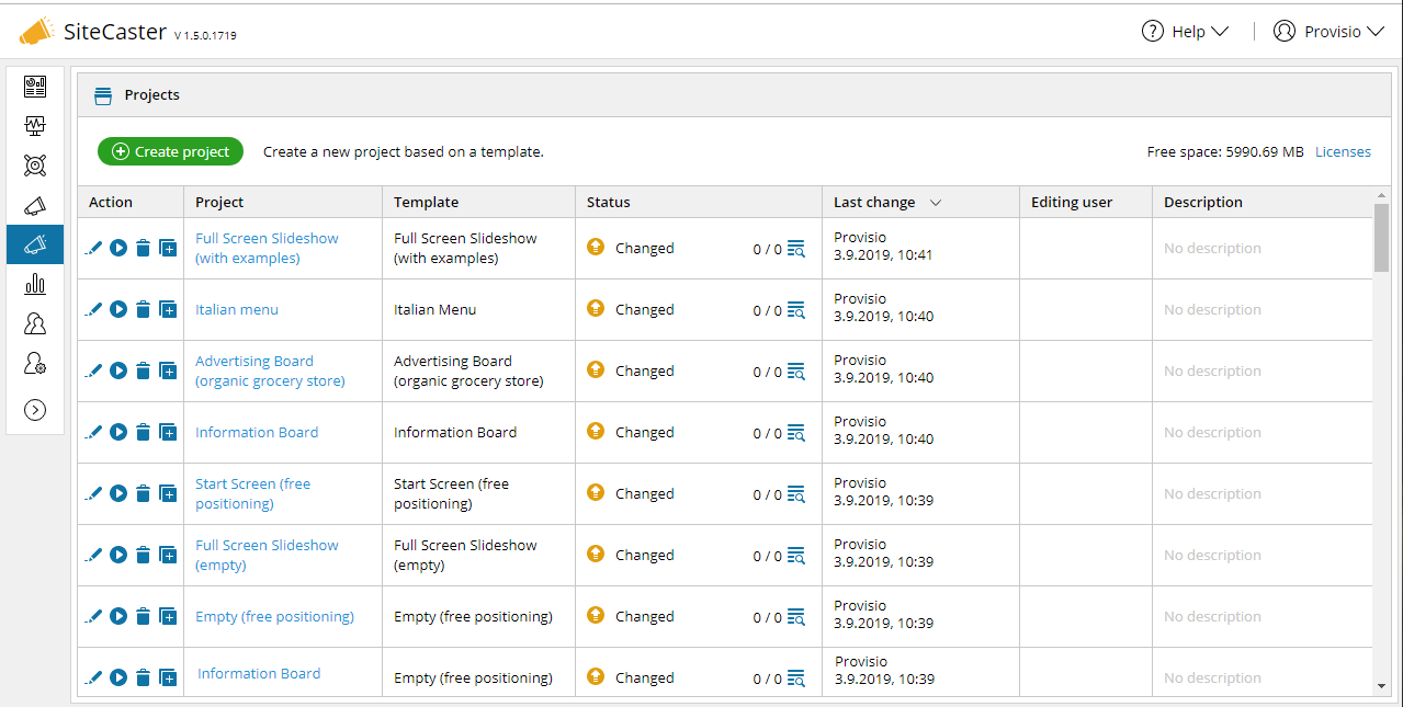 Projekte geleitet, welche alle für Ihren Benutzer freigeschalteten Projekte auflistet. Für jedes Projekt sehen Sie dort den