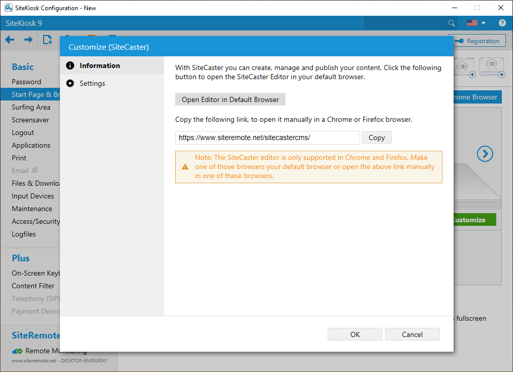 1.2 SiteCaster Editor über den SiteKiosk Konfigurator öffnen
