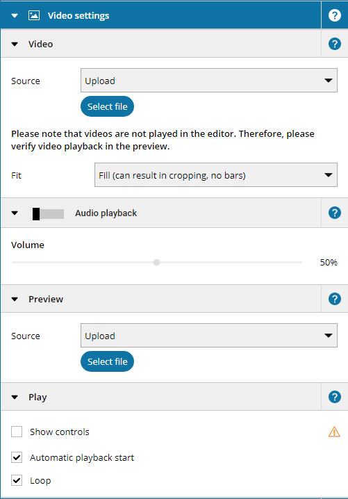 Mit Aktivierung der Checkbox Automatischer Wiedergabestart wird das Video bei Anzeige automatisch gestartet.